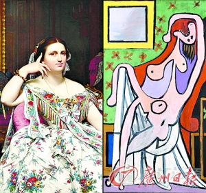 一個畫展,三個地點,此次展覽就是要打破時空及藝術(shù)流派的界限。主展場是巴黎大皇宮國家美術(shù)館,同時兩個畢加索主題畫展在羅浮宮博物館和奧賽博物館展出,分別以德拉克洛瓦的“阿爾及爾的女人”(羅浮宮)以及馬奈的“草地上的午餐”(奧賽美術(shù)館)兩幅作品為中心展出畢加索的相關(guān)變體畫作品。