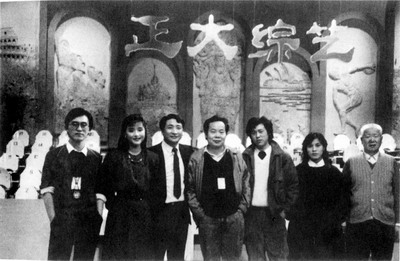 姜昆在主持《正大綜藝》節(jié)目時與楊瀾等工作人員留影。