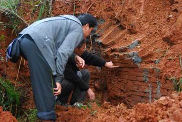 “里面好像藏著一座古墓!”侯永杰立即向有關(guān)部門報告了此事,當(dāng)?shù)鼐胶芸熠s到并封鎖了現(xiàn)場。眉山市文管部門的專家現(xiàn)場勘察后發(fā)現(xiàn),這座古墓為雙磚室墓,內(nèi)有石馬、武士石俑、陶俑等物。專家們推斷,該古墓為漢代古墓。