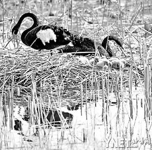 圓明園8只小黑天鵝首次試水 園方盼能過(guò)冬(圖)
