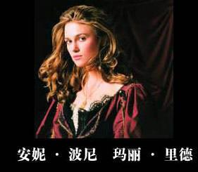 女海盜里,比較有名的有一個(gè)叫瑪麗·瑞德(Mary Read)。有記載說,她17世紀(jì)末出生在英國(guó)倫敦,從小女扮男裝,一直到當(dāng)水手、當(dāng)兵,就像花木蘭那樣,旣悺と鸬略(jīng)和騎兵團(tuán)里的戰(zhàn)友相愛結(jié)婚,但丈夫不久就死了,她重新裝扮成男子到處漂泊,在隨船前往加勒比海的途中被海盜擄獲,于是入伙成了一員,后來被俘,以海盜身份被判絞刑。當(dāng)時(shí)她身懷六甲,沒等到孩子出生,她就死在了牢房里,旣悺と鸬略诜ㄍド献鲞^這么一次陳述:“其實(shí)絞刑并沒什么可怕的。要不是有絞刑,那些膽小的人也可以成為海盜,那么勇敢的人就找不到用武之地了!