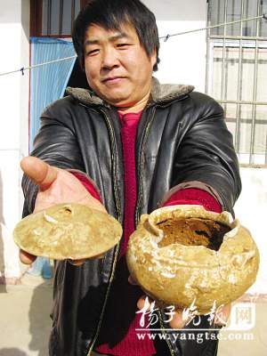 在發(fā)掘中,考古人員發(fā)現(xiàn)了4個盜洞?脊湃藛T向記者描述,這4個盜洞中,其中有兩個在墓道上方,由于下面有著25層填土石,最長的達(dá)10米,估計盜墓賊無從下手,只好放棄了。而后方的墓室頂部就沒能幸免,盜墓賊從墓室頂部又打了兩個盜洞,這里是土層封頂,為盜墓賊提供了方便。在盜洞里,考古人員發(fā)現(xiàn)盜墓賊留下的瓷片,“從瓷片來判斷,是宋代的。瓷片型制表明是生活用品,可能是盜墓賊當(dāng)年使用的油燈!彪y道是一座宋代古墓?不可能。考古人員憑經(jīng)驗認(rèn)為,下面一定葬有更早期的墓葬。隨著盜洞周圍的探挖不斷進(jìn)展,考古人員發(fā)現(xiàn),古墓中不斷出現(xiàn)散落的青磚,這是為什么?難道古墓完全被盜過了?挖掘到底部時,令考古人員十分痛惜,這處古墓葬的墓室部分遭到嚴(yán)重破損,墓壁四周的青磚基本被推倒,只留下了不到20厘米高的幾層墓壁,沒有發(fā)現(xiàn)棺釘和大量文物。專家分析,可能是該墓室被遷移,而非盜墓者所為。