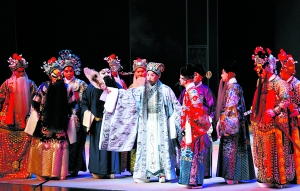金碧輝煌的銅雀臺(tái)高高矗立在舞臺(tái)上,幾十名舞女從可移動(dòng)的上場(chǎng)門(mén)中穿梭而出。昨晚,在國(guó)家大劇院首演的大型新編史詩(shī)京劇《赤壁》剛拉開(kāi)大幕,華麗的舞臺(tái)就讓臺(tái)下觀眾嘖嘖贊嘆。