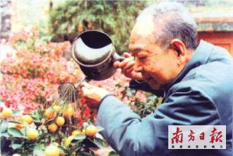 1988年春節(jié),歐陽山在庭院中澆花!≠Y料圖片