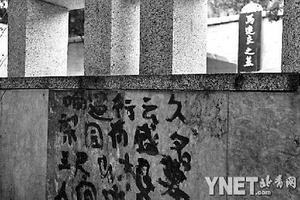 北京大學(xué)中文系的研究生小侯是在上周進行實地文史考察時發(fā)現(xiàn)這一現(xiàn)象的,當時他正籌劃為報紙撰寫有關(guān)北京旅游地理的文章。在他拍攝的照片里記錄了被涂在告知碑背后的綠色文字:“山從此地始,地到墳前終”。字跡凌亂,七扭八歪。