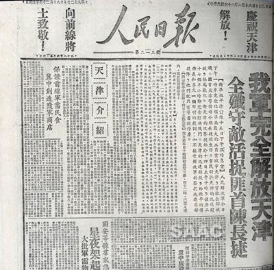 3.1949年1月16日,《人民日報(bào)》關(guān)于天津解放的報(bào)道