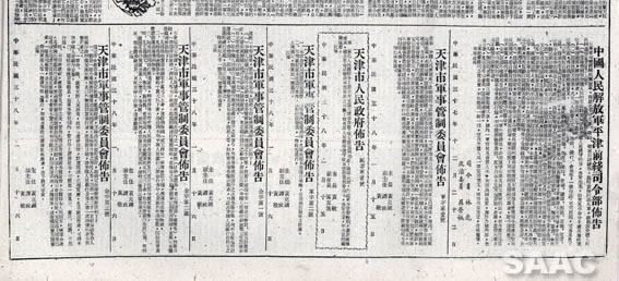 4. 1949年1月18日,《天津日報(bào)》刊登的天津軍管會布告等