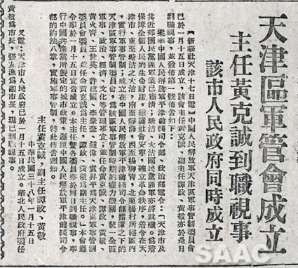 5. 1949年1月19日,《人民日報(bào)》關(guān)于天津區(qū)軍管會成立的報(bào)道