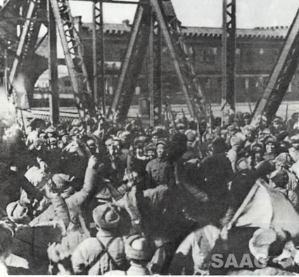 8. 1949年1月15日,天津解放,人民解放軍參戰(zhàn)部隊(duì)在海河金湯橋上勝利會師