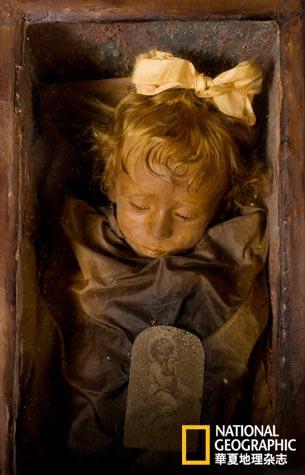 后來的年月里,人們通過壓注化學(xué)溶液的方法更好地保存尸體,上帝的這項工作被交接到了制尸工匠和科學(xué)家手中。一個禮拜堂里的棺材中長眠著小女孩羅薩莉婭·隆巴爾多,她看起來就像正在臟兮兮的棕色床單下沉睡。羅薩莉婭與其他木乃伊不同,她還有頭發(fā),用一個大大的黃色蝴蝶扎起來,打著卷兒垂在黃色的前額,像布娃娃一樣。她閉著眼睛,睫毛依然絲絲分明,若不是周圍堆著咧著嘴的骷髏、彌漫著腐爛的氣息,她會被錯認(rèn)為一個在回家的路上打瞌睡的小孩?粗龝氲缴c死的差距只在一息之間,這讓人心神難定,毛骨悚然。羅薩莉婭兩歲的時候染肺炎而死,她的父親傷心欲絕,悲痛之余請來遠(yuǎn)近聞名的制尸工匠阿爾弗雷多·薩拉菲亞,讓他把女兒的遺體保存下來。制成后的效果栩栩如生,哀慟之情似乎仍縈繞在那顆頂著金發(fā)的小腦袋上。在巴勒莫,人們把羅薩莉婭視為一個神奇的小天使。出租司機(jī)會問:“你看到羅薩莉婭了嗎?可漂亮啦!