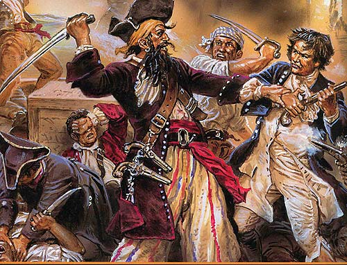 作為加勒比海盜的領(lǐng)軍人物之一,黑胡子見證了加勒比海盜的興起。黑胡子原名愛德華 蒂奇,1680年出生于英國,十幾歲時他便登上一條英國海盜船當了一個小海盜,這條海盜船擁有英國政府頒發(fā)的私掠許可證,因此可以在英國政府庇護下攻擊和掠奪敵對國家的商船。成年后,愛德華留起了一臉濃密的黑胡子,有時還會編成小辮,由此他獲得了黑胡子的綽號。據(jù)說,他力大如牛、酒量過人,可以在一整天海戰(zhàn)后,豪飲一夜朗姆酒,然后精神百倍地再次投入廝殺;因為嫌烈性的朗姆酒不夠勁,他還常常要在酒里灑上一把火藥。