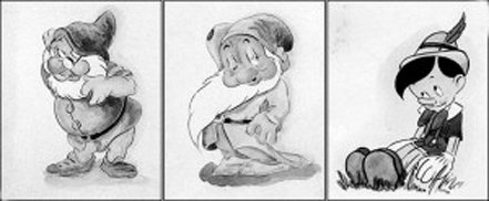 挪威北部一戰(zhàn)爭博物館館長威廉姆·哈克瓦格稱,他是在一個簽名為希特勒的繪畫作品的背后發(fā)現(xiàn)這些卡通人物像的,他在德國的一個拍賣會上買下了那幅希特勒的繪畫作品。他發(fā)現(xiàn)了迪士尼1937年電影《白雪公主》人物“萬事通”和“害羞鬼”的卡通人像圖,圖上有希特勒的簽名,另外一張“匹諾曹”的素描則沒有簽名。“匹諾曹”曾在一部1940年的迪士尼電影中出現(xiàn)。
