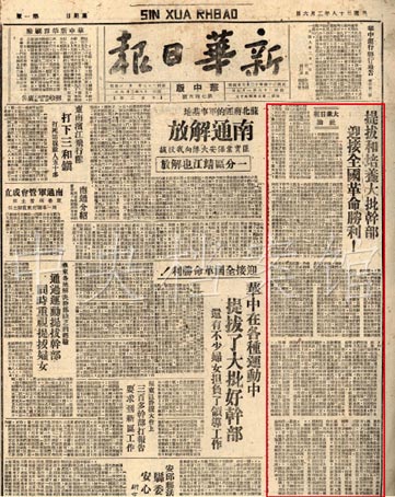 1.1949年2月6日,《新華日報》轉(zhuǎn)載的社論:《提拔和培養(yǎng)大批干部迎接全國革命勝利》