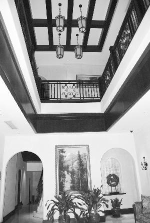 推開足有五米寬鏤空鐵藝的玻璃大門,記者走進這幢神秘的建筑,只見大廳寬敞氣派,內部家具擺設復古而豪華,墻上則是一些老的照片和油畫作品,燈飾也是流行于民國時期的西洋式樣。大廳一角的用途為接待客人,兩旁為居住區(qū),都是一間間單獨的客房。