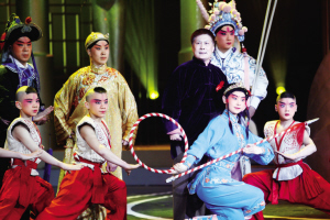 昨晚頒獎晚會上的最大亮點莫過于著名表演藝術(shù)家裴艷玲攜眾弟子登臺獻演。在京劇《響九霄》的主題音樂中,裴艷玲的眾位弟子分別扮作哪吒、沉香、武松、林沖、陸文龍、鐘馗、響九霄、趙云等亮相,依次展示各個人物最為觀眾熟悉的經(jīng)典動作和片段。當(dāng)裴艷玲唱著《響九霄》的四平調(diào)走上舞臺時,掌聲雷動,經(jīng)久不息,眾弟子圍繞在老師身旁。正可謂“名家寶刀不老,新秀層出不窮”。
