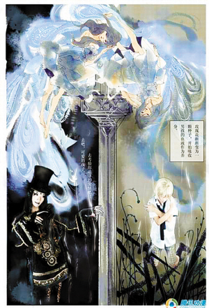 黃山的COSPLAY 作品與純粹模仿動(dòng)漫角色的舞臺(tái)COSPLAY不同,他的作品是平面的:原創(chuàng)故事、原創(chuàng)角色。由他本人扮演這些或華麗、或詭異的角色,通過拍攝、后期合成再還原到紙上,產(chǎn)生虛實(shí)相間的視覺效果!拔蚁M叱鲆粭lCOSPLAY 與原創(chuàng)漫畫結(jié)合的新路”。他這樣對(duì)記者說。