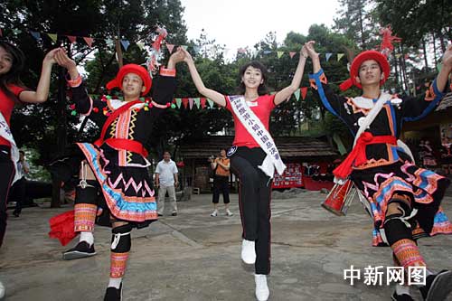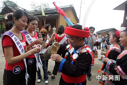 中新網(wǎng)4月26日電 (記者 應(yīng)妮)在廣東參加2009國際旅游小姐中國區(qū)總決賽的61位選手近日來到連南縣,走進(jìn)嶺南地區(qū)少數(shù)民族——瑤族生活的世界里,探尋和了解瑤族人時代生活的風(fēng)俗風(fēng)情。