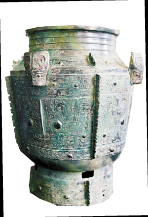 再說同,同中有異。談到三星堆文化和中原同時(shí)期文化的聯(lián)系,首先就要說到兩個(gè)坑出土的青銅尊、罍,它們的造型、紋飾當(dāng)然以殷墟文化為主,同時(shí)又摻入自己的一些特點(diǎn),這就暗含著兩種可能:一是三星堆族群接受了傳入的殷商技術(shù);一是殷商的某些青銅大工匠不知何因,或避禍而舉家遷徙,或作為戰(zhàn)俘,來到三星堆,他們憑借著青銅方面的技能,為師授徒,又按照三星堆人的想法和習(xí)慣,造出了這樣的尊和罍?脊艑W(xué)實(shí)踐證明,不只三星堆,在長江流域,在湖南、陜西漢中的城固等地出土的尊、罍居多,都有殷商的風(fēng)格同時(shí)又具備自己的特色,這就說明當(dāng)時(shí)南方各地區(qū),在殷商文化強(qiáng)大輻射的作用下,都普遍吸收了殷商文明,但并非全盤接受,同時(shí)又融入一些自己的文化元素。兩個(gè)坑出這么多東西,是不是用于祭祀然后埋藏?我們知道,過去的祭法是要用牲、用玉,并不毀壞,祭禮結(jié)束才埋藏;但這兩個(gè)坑所出的,主要是青銅禮器和人像,固然我們不排除當(dāng)時(shí)的蜀人有這樣的禮儀,但從遭到破壞的程度看,很像是被毀了的東西,很可能是亡國之前的大規(guī)模毀壞然后埋藏,而不應(yīng)該是所謂的“祭祀坑”,當(dāng)然這樣的說法需要考古學(xué)實(shí)踐來證明。