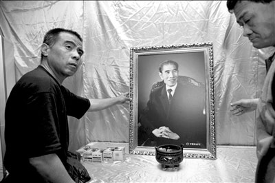 在李老家的臥室里,李文華的老伴苑福云老人在整理著李老生前的一大摞照片。老人一會(huì)兒翻看當(dāng)年姜昆、李文華合作時(shí)意氣風(fēng)發(fā)的舞臺(tái)照,一會(huì)兒又端起李文華的單人藝術(shù)照,不時(shí)念叨說:“你看他年輕時(shí)候多喜興,這張穿中山裝的就特精神!痹防细嬖V記者,靈堂中擺放的那張巨幅彩照,是中國照相館的師傅給拍的!2005年,中國照相館專為明星拍肖像照片的師傅,現(xiàn)在看來,這張照片拍得特別好,誰也看不出他患病來,精神很振作!