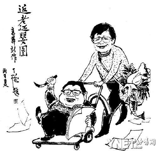 吳瓊向記者轉(zhuǎn)述的老人去世前的一些細節(jié)頗令人動容:81歲的沈峻老人一直像照顧孩子一樣照顧病中的丁聰。直到老人停止了呼吸,她覺得還有些事沒有交待清楚,于是又在丁聰衣兜里一邊放上了餐巾紙,一邊放上牙簽這兩樣丁聰出門必備的小物件。沈峻還給丁聰?shù)囊路锎狭烁呙L的《返老還童圖》并附上親筆信,大意是“小丁老頭,我推了你一輩子,把你推到了最后,剩下的路該你自己走了,不過我們很快就會又見面的!彼詈笥纸o丁聰衣襟里放上了老人生前最愛的幾樣零食:巧克力、花生米和咖啡,之后就決定不再來看丁聰了。