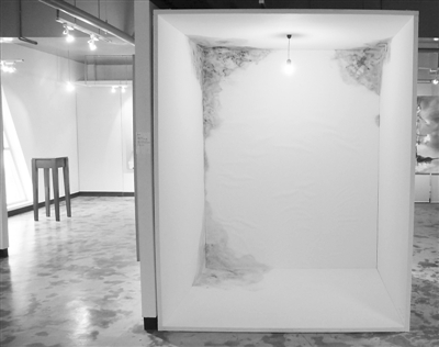 記者昨日在展廳見到,這件裝置藝術(shù)展品名為《不能知道的事兒》,占地約一平方米,作品是一間開放式的小屋,“屋”中央掛有一盞昏暗的白熾燈,“小屋天花板”的角落里有一片片的“水漬”,水漬上是一張張孩子的可愛笑臉。