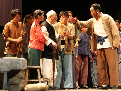 2007年4月,在中國話劇迎來百年誕辰的時(shí)候,93歲高齡的歐陽山尊同其他老一代話劇藝術(shù)家在解放軍歌劇院同臺(tái)演出了《紀(jì)念話劇百年經(jīng)典話劇片斷欣賞》。為了這場演出,山尊老傾注了很多心血。他親自挑選劇本,親自給演員說戲,并執(zhí)意要在舞臺(tái)上演出。排練時(shí),老人家說到高興處,激情澎湃,根本看不出是一位90多歲的老人。老人家的舉動(dòng)讓參加這次演出的年輕演員非常振奮,他們說,山尊老雖是90多歲高齡,但說起話來依舊虎虎生風(fēng),讓我們打心眼里佩服。這次演戲,我們得抖擻出百倍的精神,否則對不起老人家!