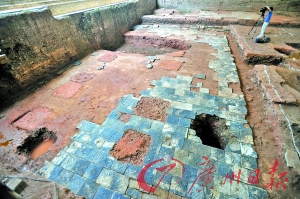 正在發(fā)掘的廣州南越國宮署遺址工地的南漢地層近日發(fā)現(xiàn)了一處大型宮殿遺址,被專家斷定為五代南漢國時期的宮殿遺址。
