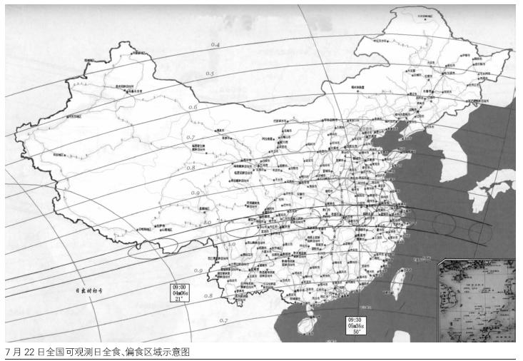 這一次日全食從印度西部開始,月影將花費8分鐘時間掃過印度。再掃過尼泊爾最南部和孟加拉國極北部,經過不丹國的大部分,穿越緬甸北部,擦過西藏一角(察隅),進入云南,最終,在太平洋東部結束。全食帶面積只占地球表面的0.71%,而且很大一部分在海上。因此,這一次日全食的最佳觀測地點在我國。