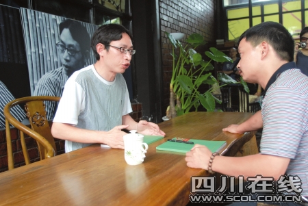 一把太師椅、一張?zhí)茨咀、一杯蓋碗茶,“廢話”開起了山寨“百家講壇”。這件名為《談?wù)劷逃返淖髌酚靡环N溫和的姿態(tài)引發(fā)了不少觀眾的議論,因為該行為藝術(shù)的作者就是飽受爭議的中學(xué)教師范跑跑。自從他受邀參加8月15日的北京798雙年展之后,范跑跑近日頻頻和藝術(shù)家“裹在一起”。當(dāng)天的《談?wù)劷逃房芍^他進(jìn)軍藝術(shù)界的“處女作”,說起這次自己參展的愿意,范跑跑有些不好意思,他說:“這次展覽的學(xué)術(shù)主持陳默老師非要讓我拿件作品出來,我就想到用這種方式,也算是我8月在北京展覽的一次預(yù)演吧!碑(dāng)天,范跑跑就用這種方式同不少觀眾坐而論道,探討中國的教育問題,市民白先生陪自己的朋友來看展覽,無意中發(fā)現(xiàn)范跑跑搖身一變成了藝術(shù)家,大感驚奇之余,以兩個孩子父親的身份和范跑跑擺了半天育兒之道。聊完他對記者說:“范跑跑的某些觀點其實還是比較對的,比如他認(rèn)為現(xiàn)在中國教育理論和實踐嚴(yán)重脫節(jié),不過這也是老生常談,而且我的確不知道他的這件行為作品算不算是藝術(shù)。” 記者 楊帆 攝影 劉亮