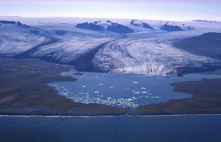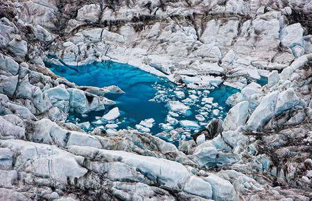 全球變暖加速冰島冰川融化:堅冰化成藍(lán)湖