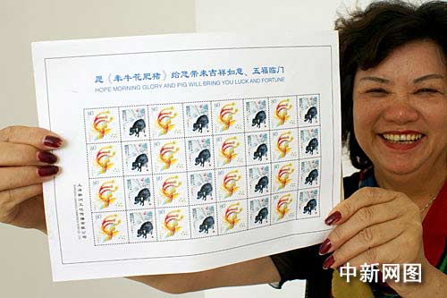 中新江蘇網(wǎng)鹽城8月17日電 (于從文 徐德鈺 李根) 上海吳女士16日來到江蘇鹽城,展示了以罕見的徐悲鴻畫豬圖為主題的個性化郵票設(shè)計效果圖。該連體郵票畫面中,一只火紅的剪紙鳳凰和一只黝黑的國畫豬相映成趣,給人以獨特的視覺感受。目前,這套郵票已經(jīng)交付印刷,將在本月底發(fā)行。