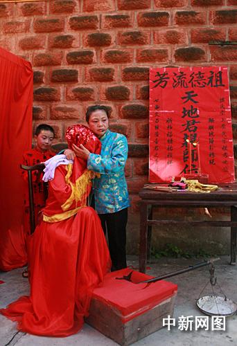 中新網(wǎng)重慶8月24日電 (孟幻)24日,在重慶市江津區(qū)舉行的“中國第二屆七夕東方情人節(jié)”現(xiàn)場,當(dāng)?shù)鼐用瘳F(xiàn)場演繹了塘河古代婚俗。在現(xiàn)場的56對民族情侶和1對跨國愛侶對該婚禮習(xí)俗表現(xiàn)出濃厚興趣,躍躍欲試。