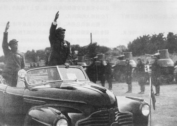 3月25日下午3時,毛澤東等黨的領(lǐng)袖在西郊機場進行了進京后的第一次閱兵。