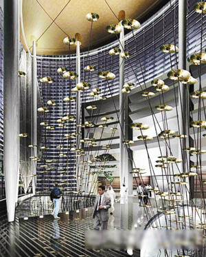 這件作品將包括196個(gè)青銅、黃銅,及鍍金材質(zhì)的打擊樂器鈸,每一個(gè)鈸的材料都來自不同的國家,它們合在一起會(huì)發(fā)出令人驚訝的柔和水聲,那聲音像是從天花板上滴下來的水滴的聲音。 (文文)