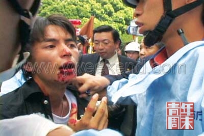 靖國神社內(nèi),眾人向神社行禮參拜,突然,一個學(xué)生模樣的年輕人沖到前面高呼“反對參拜靖國神社!”他很快被撲倒在地,雙方扭打在一起。終于有人竭力拉開了他們,又有一位老者上前,緊逼著他走了很遠(yuǎn),并不住呵斥:“滾回中國去!滾回中國去!”年輕人一言不發(fā),但這長達(dá)幾分鐘的反復(fù)呵斥令這些中國觀眾有些難以忍受。一直用攝像機(jī)記錄這一過程的李纓當(dāng)時也急切地想驗(yàn)明這個年輕人的身份,于是,在旁邊所有人都把這個反對參拜靖國神社的年輕人當(dāng)作中國人的時候,李纓小心翼翼地問了一句:“是中國人嗎?”“不,我是日本人!