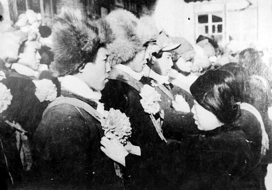 除了參軍作戰(zhàn)外,東北地區(qū)還有60萬民工支前出戰(zhàn)勤!耙擞腥!要錢有錢!要糧有糧!”為了這場戰(zhàn)爭,遼寧省幾乎動用了全省的人力物力。17歲至50歲男子們,18 歲至45歲婦女們參加戰(zhàn)勤工作。一切有運輸能力的工具,船只、車輛、牲畜等全部用來戰(zhàn)爭運輸。工人們組織擔架隊。學校醫(yī)院組織輸血隊……