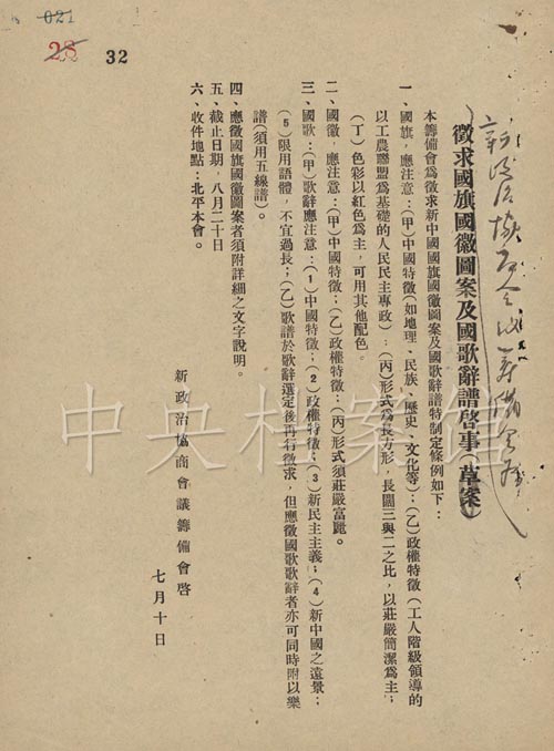 1949年檔案:第28集 新政協(xié)籌備會第六小組決定公開征求國旗國徽圖案及國歌詞譜