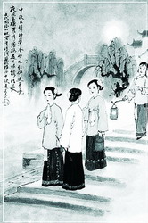 中秋之夜,天清如水,月明如鏡,可謂良辰美景,美不勝收。然而對(duì)此人們并未滿足,于是便有“燃燈”以助月色的風(fēng)俗。在湖廣一帶有用瓦片疊于塔上燃燈的節(jié)俗。在江南一帶則有制燈船的節(jié)俗。在近代中秋燃燈之俗更盛。今人周云錦、何湘妃在《閑情試說(shuō)時(shí)節(jié)事》一文中描述說(shuō),中秋節(jié)廣東張燈最盛,各家于節(jié)前十幾天,就用竹條扎燈籠,作果品、鳥(niǎo)獸、魚(yú)蟲(chóng)形及“慶賀中秋”等字樣,上糊色紙,繪各種顏色。中秋夜燈內(nèi)燃燭用繩系于竹竿上,高樹(shù)于瓦檐或露臺(tái)上,或用小燈砌成字形或種種形狀,掛于家屋高處,俗稱“樹(shù)中秋”或“豎中秋”。富貴之家所懸之燈,高可數(shù)丈,家人聚于燈下歡飲為樂(lè),平常百姓則豎一旗桿,燈籠兩個(gè),也自取其樂(lè)。滿城燈火不啻琉璃世界?磥(lái)古時(shí)中秋燃燈之規(guī)模似乎僅次于元宵燈節(jié)。