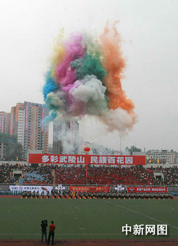 中新網(wǎng)黔江10月18日電 (杜遠(yuǎn)) 第二屆中國(guó)武陵山民族文化節(jié)18日在重慶市黔江區(qū)正式開(kāi)幕。