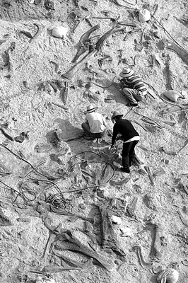 據(jù)王克柏介紹,諸城已選聘50多名專業(yè)人才和優(yōu)秀大中專畢業(yè)生,組建了恐龍化石發(fā)掘、修復、科研3支隊伍。