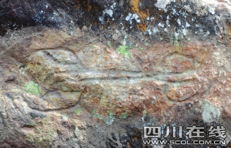 在涼山州美姑縣一座海拔2000多米的高山上,遍布巖刻,圖形古樸,刻線稚拙,甚至有些圖形還未刻完……有人猜測,這些巖刻可能是古代濮人所刻;也有人認為與彝族或三星堆居民有關(guān)。