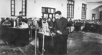 為了這次出庭,王克峰頭一次穿上整潔的灰色毛料中山裝、黑皮鞋,拎的是米黃色皮包,在法庭上接受公訴人、審判長、辯護(hù)人、被告人的質(zhì)疑詢問,以鑒定證據(jù)支持公訴。整個(gè)過程,都用電影膠片給記錄了下來。被告人住岡義一當(dāng)庭認(rèn)罪,請求審判長“給我最嚴(yán)重處分”。