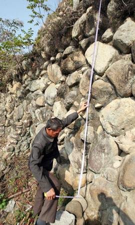 據(jù)介紹,桃園古溪村目前有1500余人,大都姓林,是古堡主人的后裔,“石堡建于明朝中期,有400多年歷史了!74歲的林公開老人告訴記者,400多年前,桃園林氏先祖元佑公從水頭遷來東田桃園古溪,看到這里風(fēng)景優(yōu)美,就決定在這里定居。 “修建石堡的是元佑公的二兒子林管!绷止_老人說,林管別名“經(jīng)山”,明朝時(shí)期沿海倭寇猖獗,廣有資財(cái)?shù)牧止芘麓迩f毀于倭寇之手,就花費(fèi)家產(chǎn),經(jīng)過數(shù)年的時(shí)間終于建成了一棟遠(yuǎn)近聞名的石堡。 石堡建成后不久,就有倭寇入侵東田,當(dāng)?shù)厝迦丝谥挥?00余人,包括鄰村的數(shù)百名百姓全部躲進(jìn)石堡避禍,“里面有糧食,又有水井!辟量車(shù)日,使用火攻不但久攻不下,還因?yàn)楸?nèi)百姓用長矛弓箭反擊,自己反而死傷了不少,倭寇無奈只好退兵。 66歲的林凱老人告訴記者,石堡不但成功抵御了倭寇的進(jìn)攻,在歷史上還多次防御了土匪,真正起到了保家護(hù)鄉(xiāng)的作用。 考古專家劉志成告訴記者,古堡抗倭的說法應(yīng)該可信度還比較高,明代東田曾出了一個(gè)著名的抗倭英雄歐陽深將軍,曾多次在東田、英都一帶與倭寇血戰(zhàn),而當(dāng)時(shí)整個(gè)泉州乃至東南沿海都是“倭禍”重災(zāi)區(qū)。