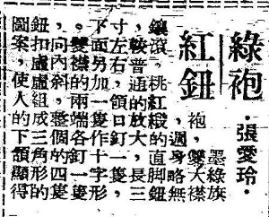 不久前出版的《舊聞新知張愛玲》一書,收錄了張愛玲散文《炎櫻衣譜·前言》,這篇談衣服的文章是張愛玲為其好友炎櫻新開的服裝店寫的“廣告軟文”,文章與張愛玲名作《更衣記》多有相似,堪為姐妹篇。