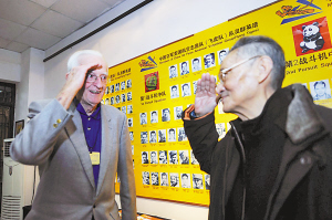 昨日,渝中區(qū)飛虎隊博物館內,龍啟明與鮑勃·莫里森相見,兩人互敬軍禮。