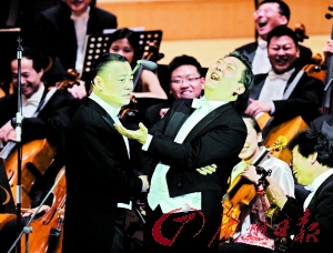 前晚,指揮家余隆在北京迎來(lái)“海派清口”周立波,兩人跨界合作的“歡樂(lè)頌·交響音樂(lè)‘新’賞會(huì)”笑聲不斷。首次北上的周立波,雖然是用普通話來(lái)“詼解”交響樂(lè),但并未影響笑果,北京觀眾以大笑和掌聲回應(yīng)了這場(chǎng)別具一格的演出。