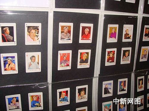 徐州撲克大王姚煥新從收藏的撲克牌中,精心挑選50余副關(guān)于女性題材的特色撲克牌并制作成40余塊展板。在巡展現(xiàn)場,記者看到,展板里有以古代女性為主題的《歷代百美圖典》、《中國歷代才女》,也有現(xiàn)代流行的青春偶像《S.H.E》、《臺灣第一美女林志玲寫真》;有中國的《巾幗英!、《宋氏三姐妹》,也有外國的《鐵娘子》、《折翅的鐵蝴蝶》;有《二戰(zhàn)魅力女郎》,也有現(xiàn)代《中國女兵》。