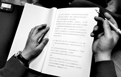 在草草瀏覽了數(shù)行文字后,周立波突然猛地將文件夾合攏,“太亂了,一會(huì)兒上臺(tái)再來(lái)理理思路!彼淮址Q,務(wù)必把夾在文件夾上的計(jì)時(shí)器調(diào)好時(shí)間,徹底拋棄了這份無(wú)“大哥”把關(guān)的提綱,做好了即興發(fā)揮的準(zhǔn)備。