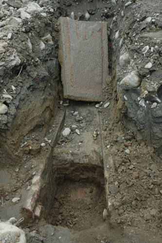 近日,四川省江油發(fā)電廠在維修老廠區(qū)染料車間道路時發(fā)現古墓,廠方立即停工保護現場并報告市文管所前來調查。該墓葬為唐代石槨墓葬。墓長2.45米,寬1.2米高0.9米,墓葬距地表1.1米。清理出土有開元通寶錢幣、鐵器殘件、瓷片、陶片殘件等文物標本。