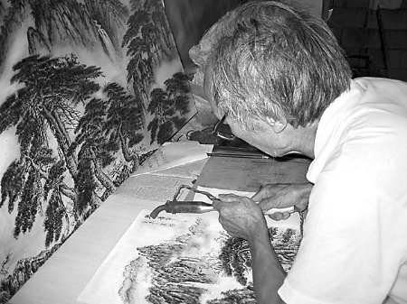 “看著簡單,烙起來難!蹦详柺欣赢嫃S廠長李哲說,烙畫亦稱烙花、燙畫、火筆畫,是以溫度在300攝氏度至800攝氏度的烙鐵代筆,利用炭化原理,不施任何顏料,在竹木、宣紙、絲絹等材料上取其相應(yīng)溫度進(jìn)行勾、擦、點、烘,巧妙自然地把繪畫藝術(shù)的表現(xiàn)技法與烙畫藝術(shù)融為一體,形成自己獨特的藝術(shù)風(fēng)格。用這種方法創(chuàng)作出的書畫作品為茶褐色,古樸典雅,精美絕倫。